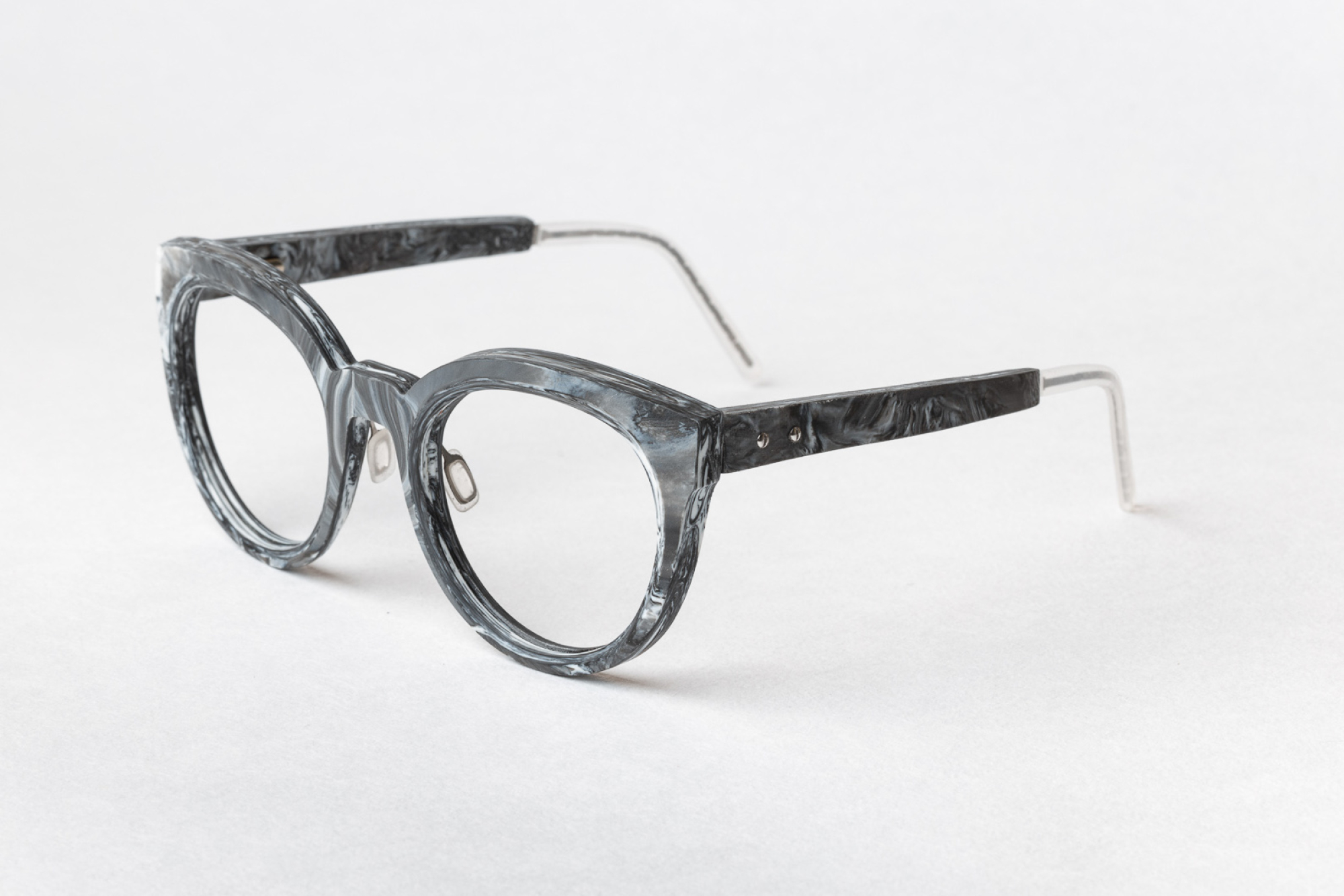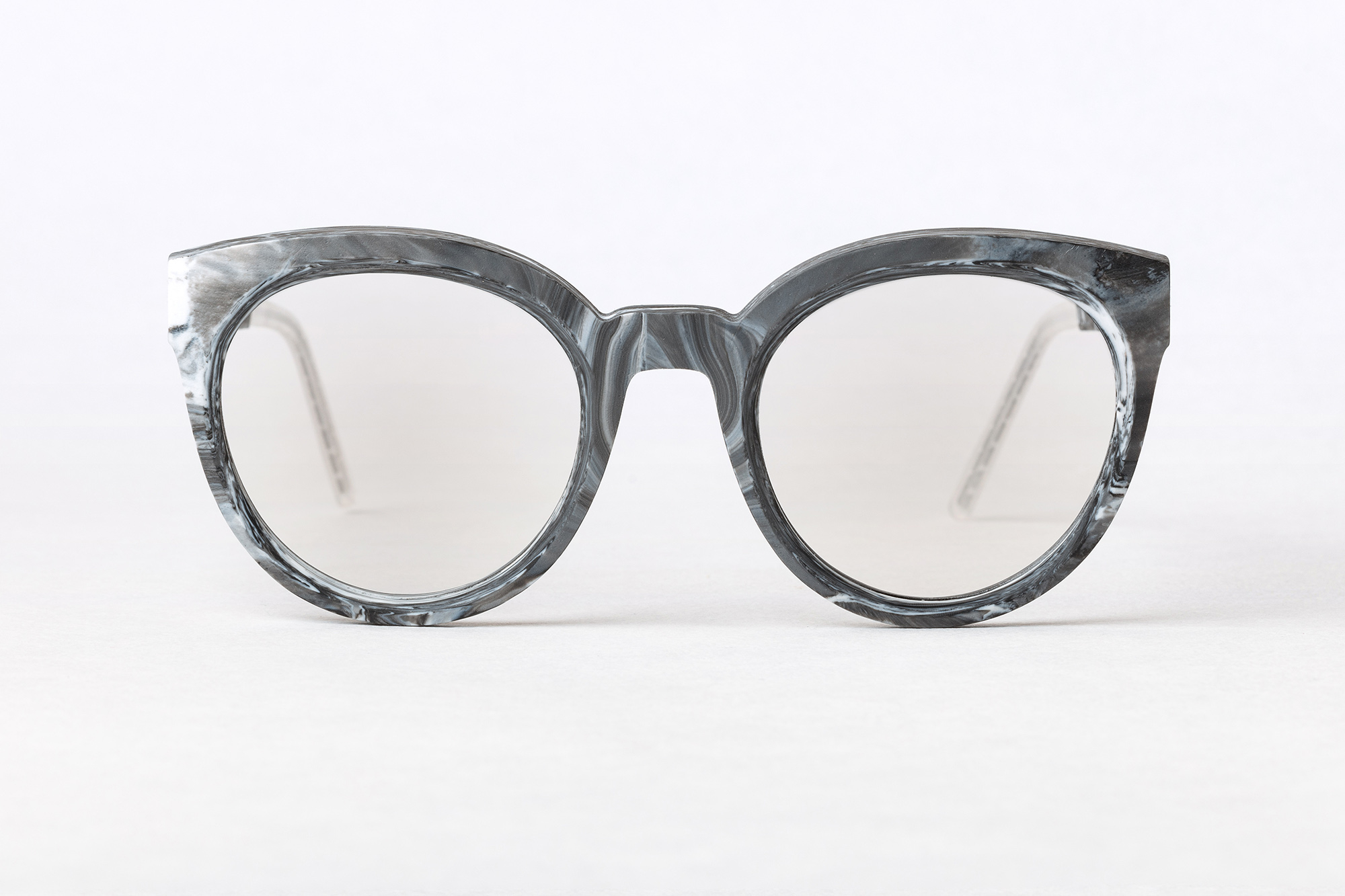 A lightweight version of sleek oversized designs. This frame is made of 21st century marble - recycled plastic.