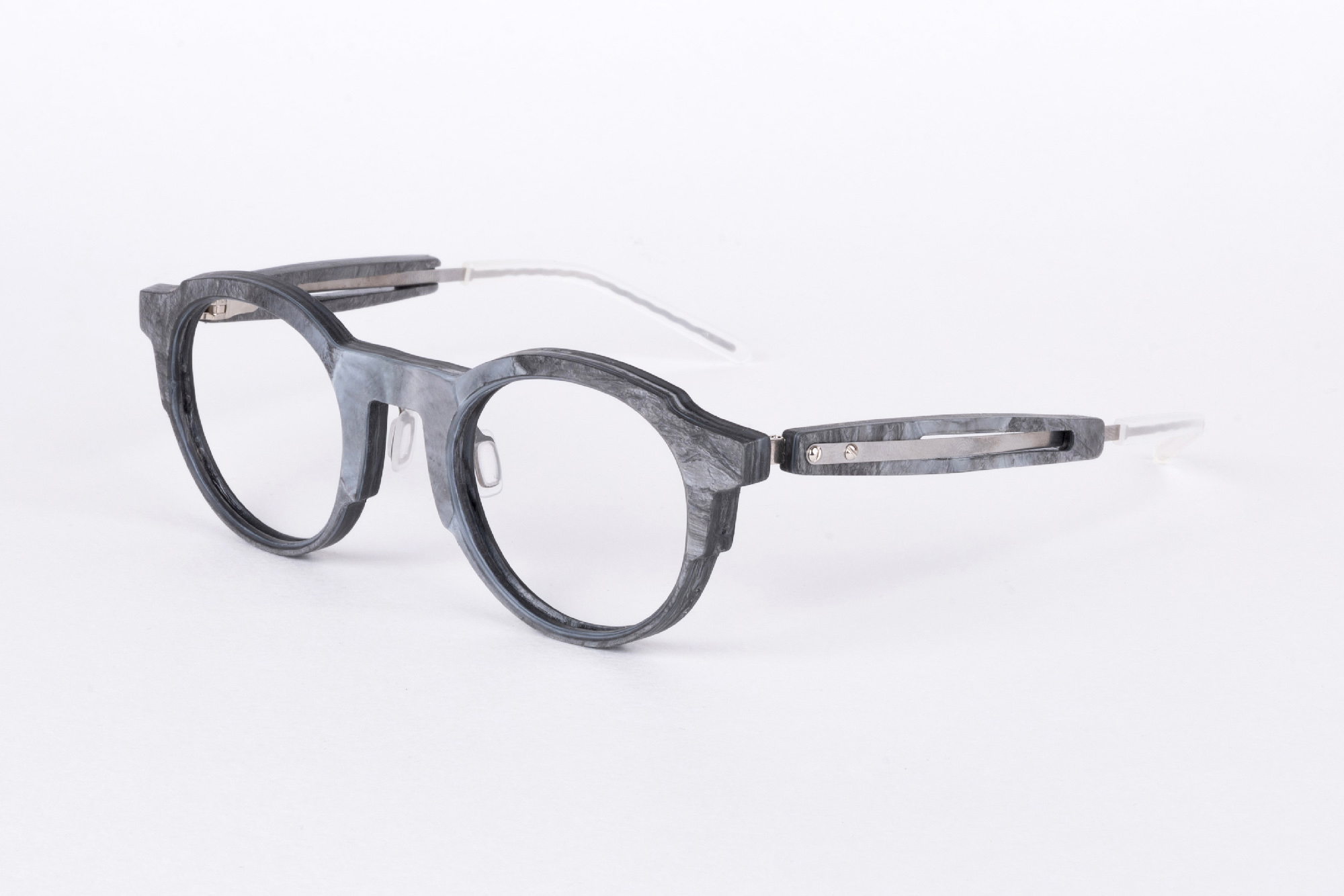 A frame that is in keeping with the spirit of the times: minimalist, weightless and sustainable. We obtained the “marble” for the MIDORI collection from recycled plastic.