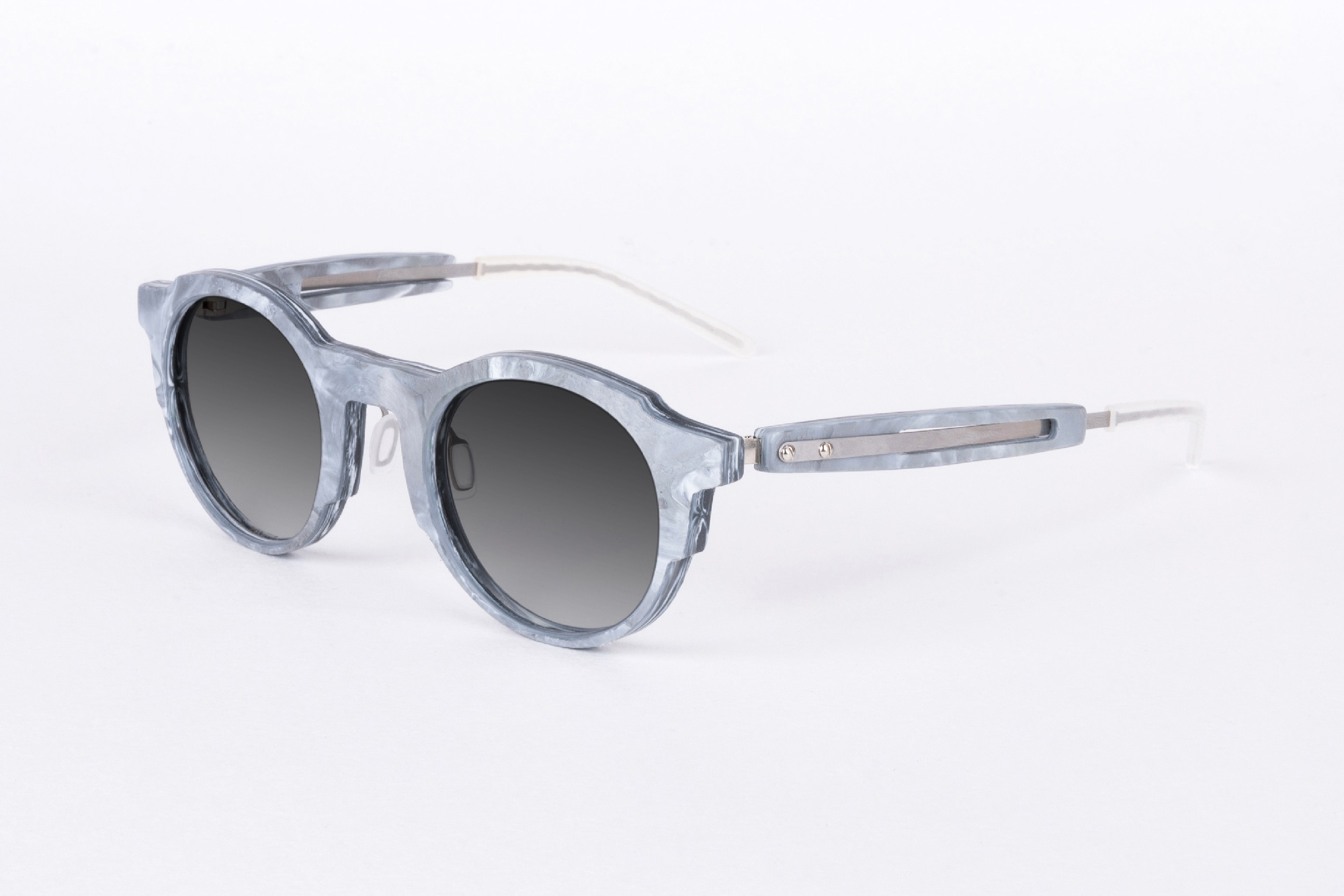 A frame that is in keeping with the spirit of the times: minimalist, weightless and sustainable. We obtained the “marble” for the MIDORI collection from recycled plastic.