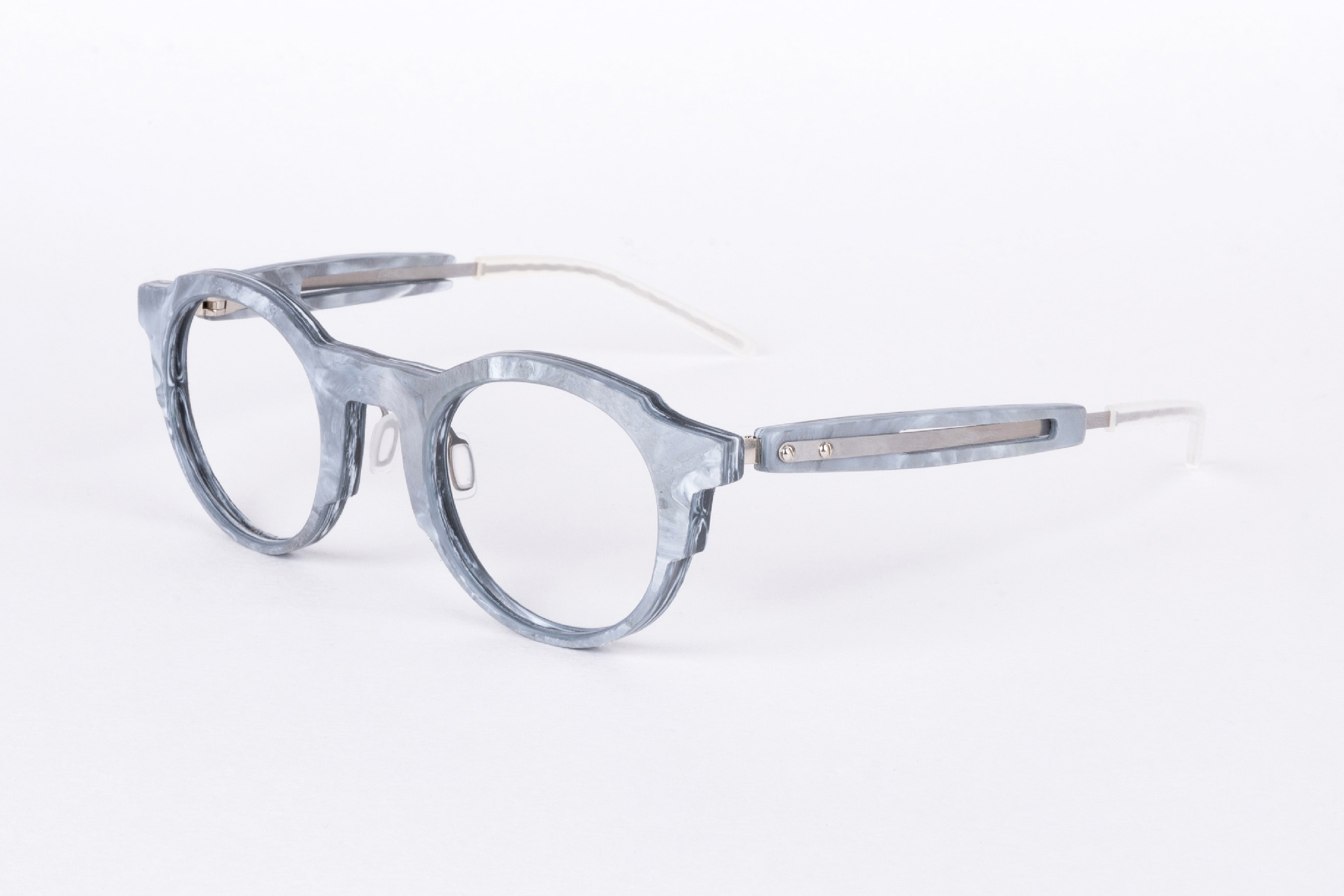 A frame that is in keeping with the spirit of the times: minimalist, weightless and sustainable. We obtained the “marble” for the MIDORI collection from recycled plastic.